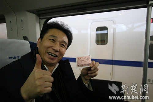 田克兢接受記者采訪時(shí)表現(xiàn)得格外興奮,他還高興地向記者展示了車票。他說,早就在關(guān)注武漢高鐵了,能有機(jī)會(huì)親自體驗(yàn),實(shí)在激動(dòng)。