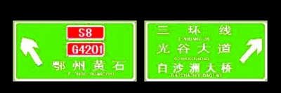 武黃高速進(jìn)入三環(huán)線(由高新往青山、漢口方向)設(shè)有4組指路牌,指向標(biāo)明的都是“三環(huán)線東”,但“三環(huán)線東”沒有明確的定義,容易產(chǎn)生誤導(dǎo)。