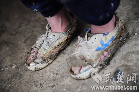 在大方縣興隆村,小女孩高燕穿的球鞋看了讓人心疼。5個(gè)腳趾全露在外面,鞋面與鞋底僅靠幾根棉絲相連,高燕一直都是靠這雙鞋爬山上學(xué),到了學(xué)校再換上好一點(diǎn)的球鞋。